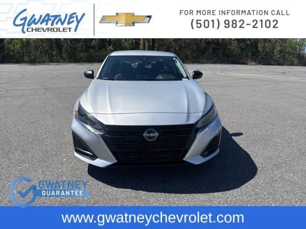 Mega Markdown Used Car Sale at Gwatney Chevrolet in Jacksonville!This 2024 Nissan Altima 2.5 SV is a remarkable opportunity for the discerning driver. With its sleek silver exterior, this sedan combines style and substance, offering an exceptional driving experience. Let's explore the features that make this Altima a standout choice.- Dual trunk hooks- 6 Speakers- Auto High-beam Headlights- Fully automatic headlights- NissanConnect featuring Apple CarPlay- Rear reading lights- Rear seat center armrest- Tilt steering wheel- Low tire pressure warning- Occupant sensing airbag- 17 Alloy WheelsUnder the hood, this Altima is powered by a 2.5L 4-Cylinder DOHC 16V engine, delivering an impressive 27 city/39 highway MPG. The Xtronic CVT transmission ensures a smooth, responsive ride, while the Front-Wheel Drive configuration provides confident handling in a variety of driving conditions.The interior of this Altima is designed with your comfort and convenience in mind. Enjoy the premium Cloth Seat Trim, Power Driver Seat, and Steering Wheel Mounted Audio Controls, allowing you to personalize your driving experience. The Rear Parking Sensors and Blind Spot Warning features provide added peace of mind, while the Rear Window Defroster and Air Conditioning keep you comfortable year-round.Technological features abound, including the AM/FM Audio System with SiriusXM Radio, Bluetooth connectivity, and the NissanConnect infotainment system with Apple CarPlay integration. Stay connected and entertained on every journey.Safety is paramount, and this Altima delivers with a comprehensive suite of advanced features. Dual Front Impact Airbags, Dual Front Side Impact Airbags, Overhead Airbag, and Knee Airbag provide protection in the event of a collision. The 4-Wheel Disc Brakes with ABS, Electronic Stability Control, and Traction Control further enhance your driving confidence.This 2024 Nissan Altima 2.5 SV is a remarkable value, offering a compelling blend of style, performance, and technology. Experience the difference for yourself by scheduling a test drive at Gwatney Chevrolet in Jacksonville today. We're confident you'll be impressed by this exceptional vehicle.