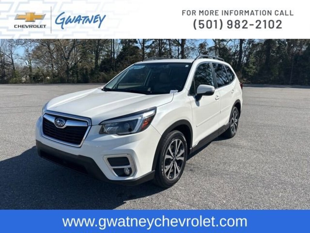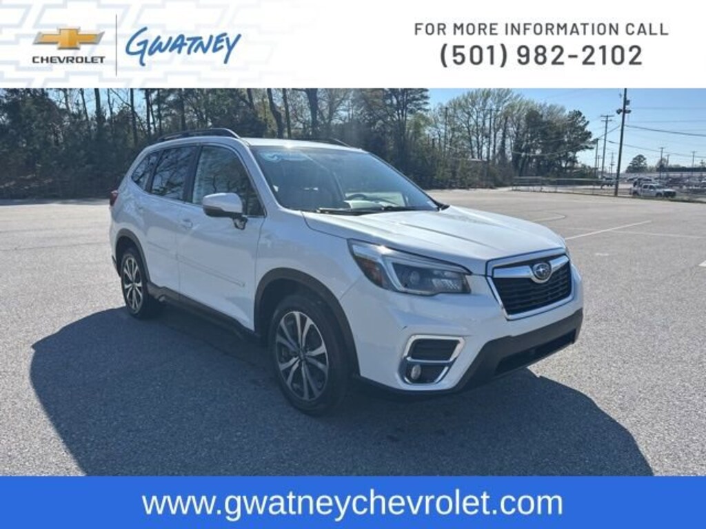 Mega Markdown Used Car Sale at Gwatney Chevrolet in Jacksonville!This 2021 Subaru Forester Limited is a true standout in its class, packed with premium features that elevate the driving experience. Boasting a sleek white exterior and a spacious, well-appointed interior, this Forester is ready to take you on all your adventures.- AUDIO SYS & DRIVER ASSIST TECH & HTD STEER WHEEL- Navigation System- harman kardon 576W Amp & Speaker System- Radio: Subaru Starlink 8.0 Multimedia Nav System- Emergency communication system: STARLINK Safety and Security (Subscription Required)- Power moonroof: Panoramic- Power Liftgate- Heated door mirrors- Paddle-Shift Control Switches- Roof rack: rails only- Spoiler- Turn signal indicator mirrorsSlip behind the wheel and experience the power of the 2.5L 4-cylinder DOHC engine, paired with Subaru's renowned Lineartronic CVT and Symmetrical All-Wheel Drive system. With an impressive 26 city/33 highway MPG, this Forester delivers exceptional efficiency without compromising performance.The Subaru Starlink 8.0 Multimedia Navigation System keeps you connected and on track, while the harman kardon premium audio system provides a concert-hall experience. The Reverse Automatic Braking System and a host of driver-assist technologies offer added peace of mind, ensuring a safe and confident drive.Heated front seats, a heated steering wheel, and an auto-dimming rearview mirror with compass and HomeLink further enhance the Forester's luxurious amenities. The panoramic moonroof and power liftgate add a touch of convenience and style to your everyday commute and weekend getaways.This 2021 Subaru Forester Limited is a true testament to Subaru's commitment to quality, safety, and versatility. With its impressive features, exceptional performance, and unparalleled value, it's the perfect companion for your active lifestyle. Visit Gwatney Chevrolet in Jacksonville today and experience the difference for yourself.